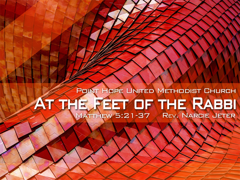 We’re continuing in our sermon series “At the Feet of the Rabbit.”  Remember what was said last week, 17 “Do not think that I have come to abolish the law or the prophets; I have come not to abolish but to fulfill. 18 For truly I tell you, until heaven and earth pass away, not one letter, not one stroke of a letter, will pass from the law until all is accomplished. 19 Therefore, whoever breaks one of the least of these commandments, and teaches others to do the same, will be called least in the kingdom of heaven; but whoever does them and teaches them will be called great in the kingdom of heaven. 20 For I tell you, unless your righteousness exceeds that of the scribes and Pharisees, you will never enter the kingdom of heaven.” He speaks with authority, not just moral sayings.  He doesn’t just list “the rules,” he fulfills them.  He speaks authoritatively on the word of God because he’s not only a part of the Triune God, he is God’s son, whom God broke through the Heavens at his baptism and said, “This is my Son, my Beloved, with whom I’m well pleased.”  This is our Rabbi, whom we’ve chosen to follow, whose dust gets into the nooks and crannies of our hearts and lives, who shows us the way to live.